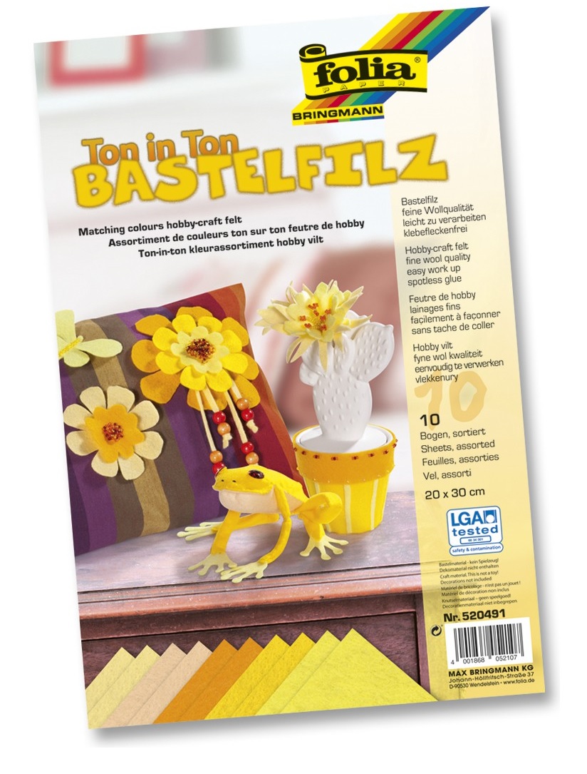 Н-р для творчества из фетра, 150 г/м2, 20х30 см, 5 цветов, 10 л/уп, оттенки желтого